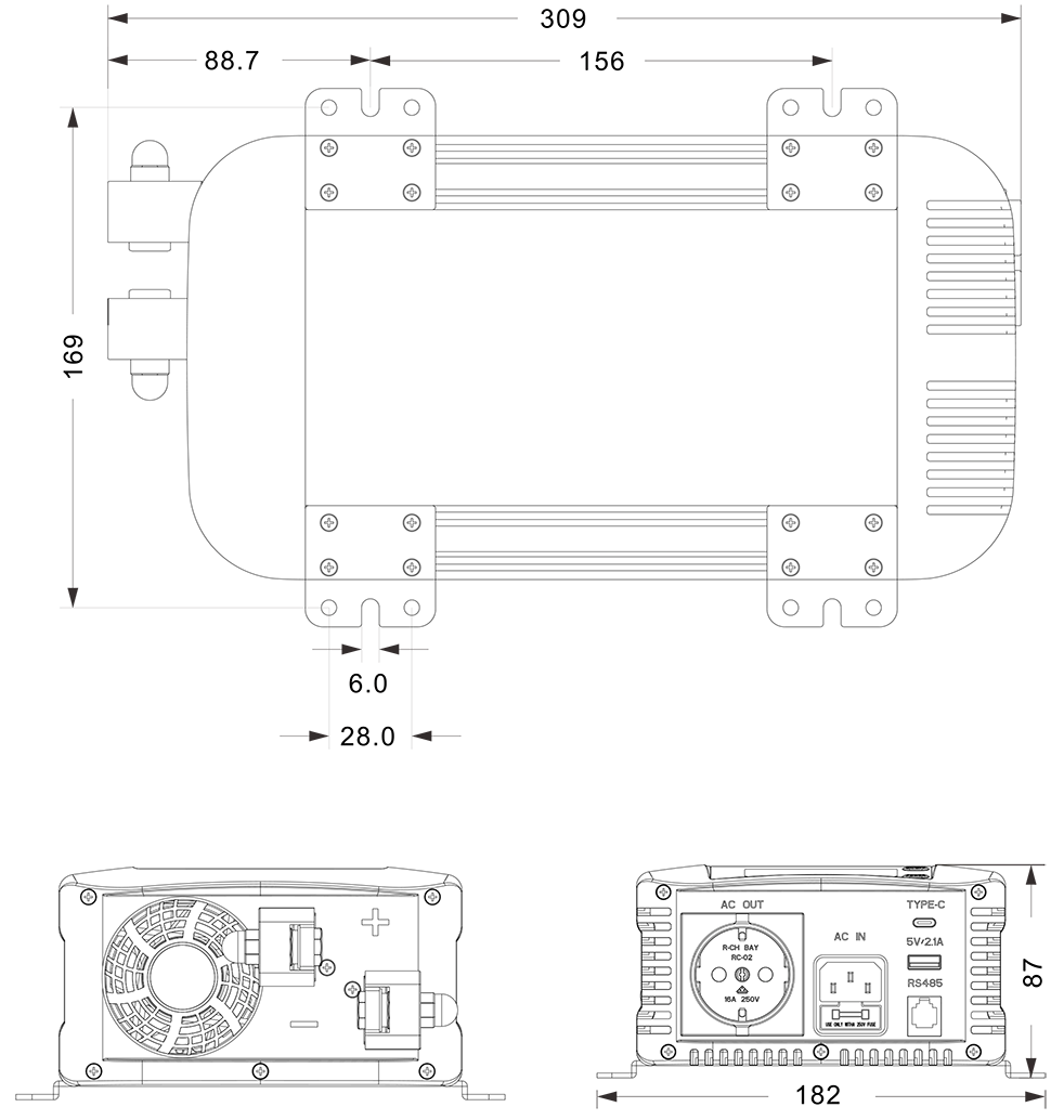 Iní Rozmer (Š×V×H) 309×182×87 mm