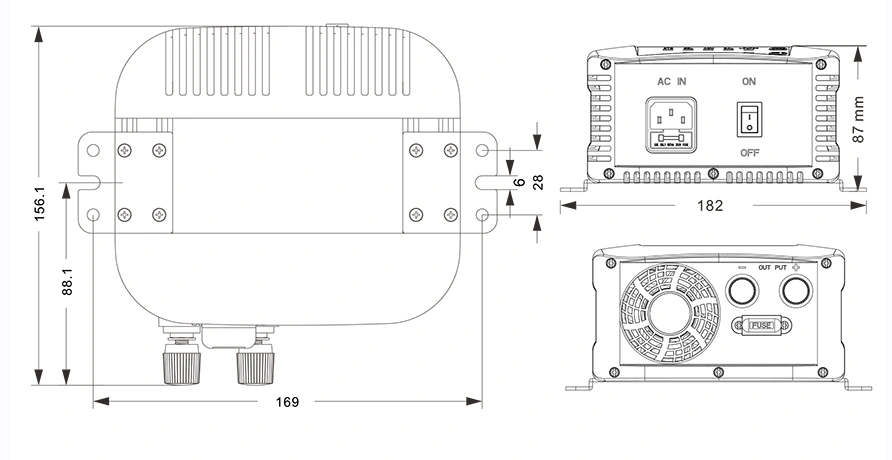 Mechanické výkresy: (156,1 × 182 × 87 mm)