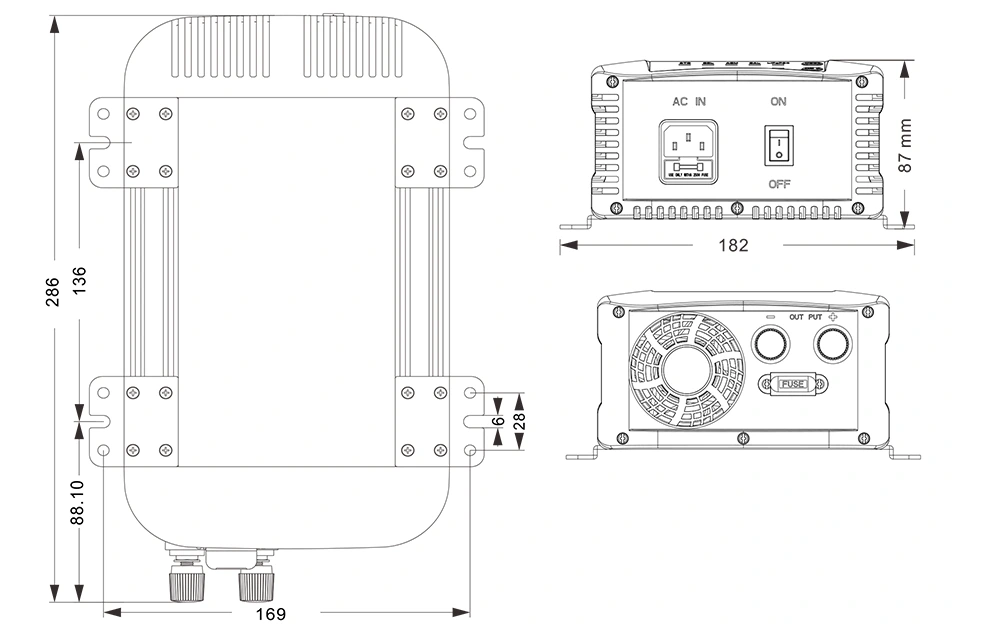 Mechanické výkresy: (286 × 182 × 87 mm)