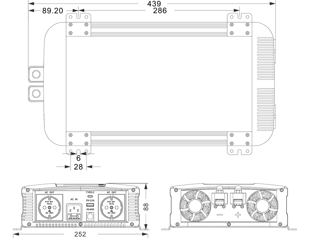Iní Maximálne výstupné napätie 439 × 252 × 88 mm