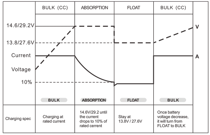 Ovládanie batérie (3-stupňové nabíjačky batérií) Hromadné / Absorpcia / Float