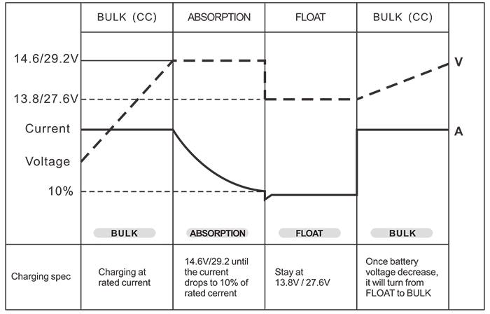 Ovládanie batérie (3-stupňové nabíjačky batérií) Hromadné / Absorpcia / Float